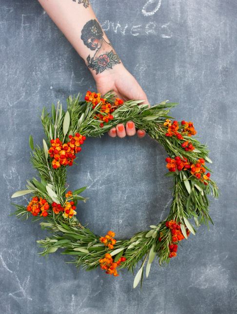 Composée de végétaux faciles à trouver et à assembler, comme le romarin et les branches d’olivier, cette couronne de l’Avent rafraîchira votre intérieur jusqu’au jour de Noël.